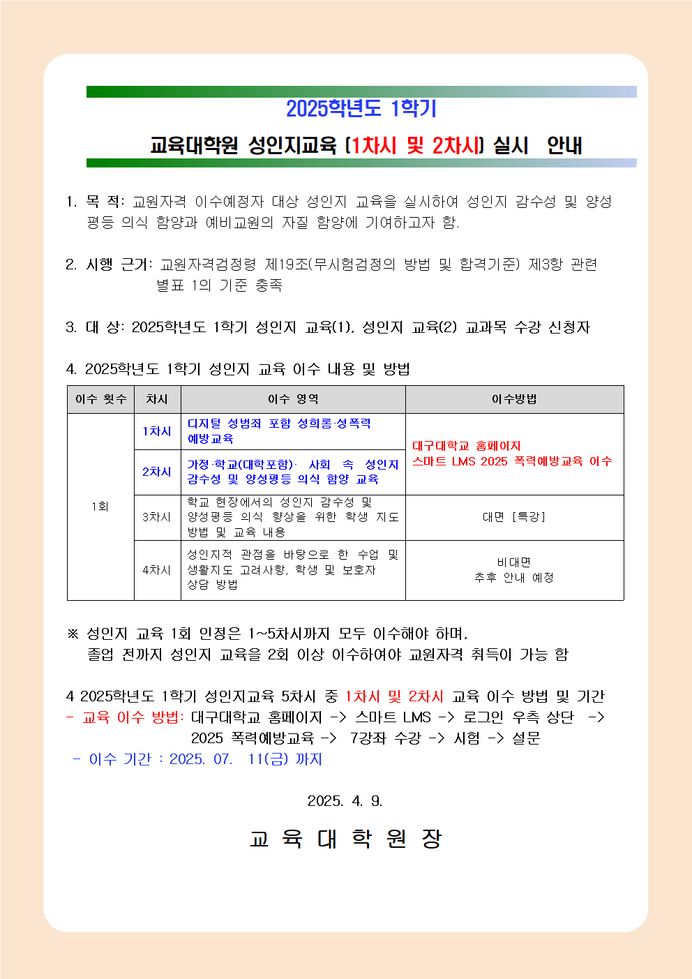 2025학년도 1학기 성인지 교육 실시 안내